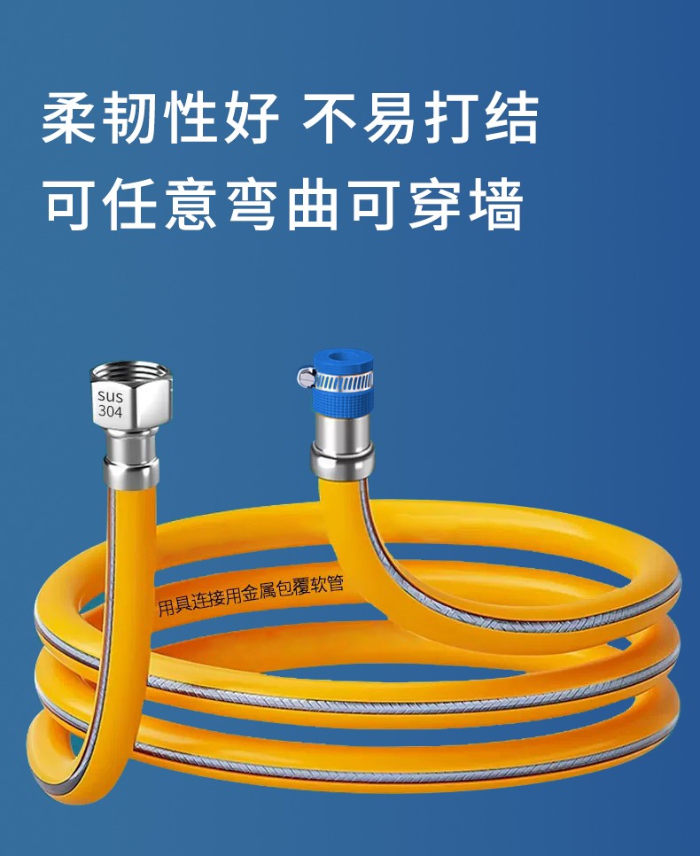 產(chǎn)品可用于各種燃?xì)庠罹?、熱水器、瓶裝液化石油氣等各種燃?xì)饩哌B接;依據(jù)GB44017-2024《燃?xì)庥镁哌B接用金屬包覆軟管》生產(chǎn)。管體柔軟、防鼠咬;耐壓大于800KPa;可連接液化氣罐、移動式灶具、嵌入式灶具使用。 A型:兩端接頭采用螺紋式,安裝后更緊密牢靠。 B型:一端螺紋連接,一端喉箍鎖緊插入式連接。 C型:兩端喉箍鎖緊插入式接口連接。